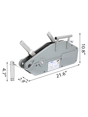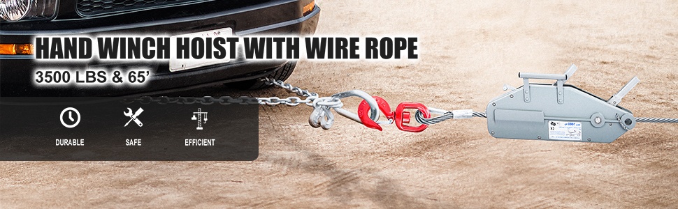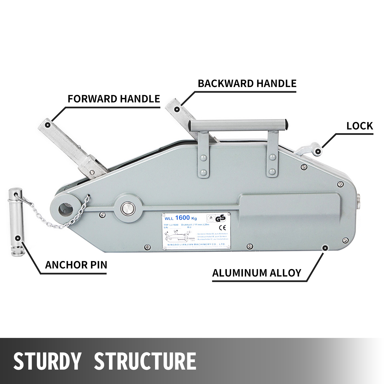 Nimelliskapasiteetti: 3500 lbs. Soveltuu puiden, kantojen, ajoneuvojen ja muiden siirrettävien kuormien manuaaliseen vetoon ja nostoon.