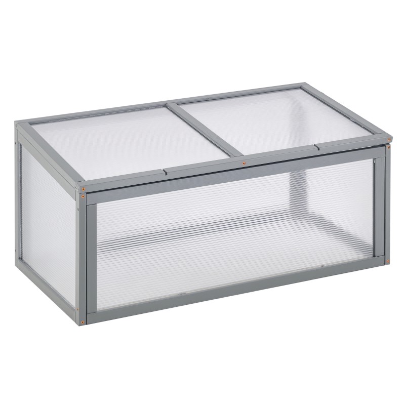 Kasvilava / pieni kasvihuone puu ja polykarbonaatti 90 x 46 x 40 cm harmaa