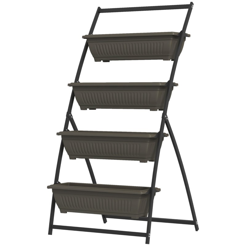 Korkea malli säästää tilaa ja tekee hoidosta miellyttävämpää, sillä kasveihin ei tarvitse kurotella maasta käsin. Teräsrunko ja säänkestävät muovilaadikot on suunniteltu kestämään käyttöä ulkona, ja tyhjennettäessä laatikot voidaan pinota päällekkäin varastoinnin helpottamiseksi.