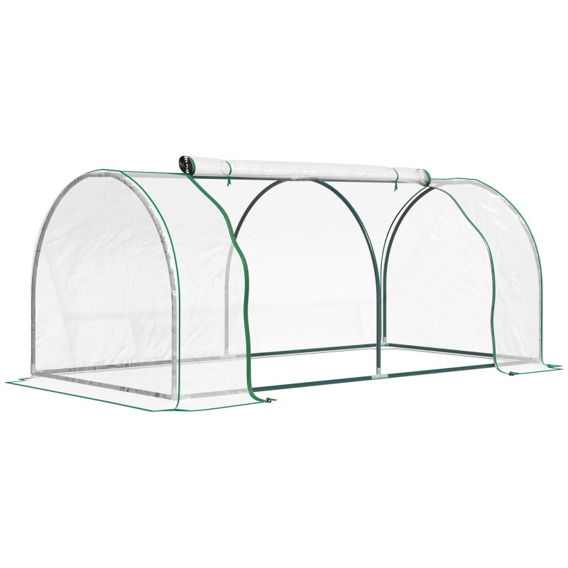 Kasviteltta / kasvihuone kasvien kasvatukseen, teräsrunko ja muovipeite, 250 x 100 x 80 cm, vihreä