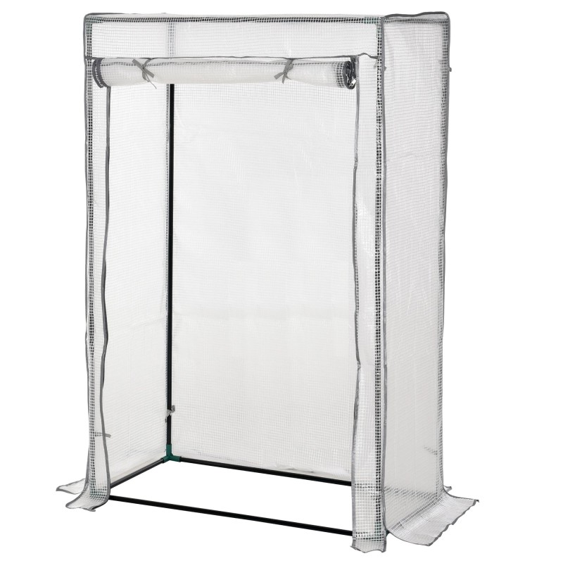 Kasviteltta parvekkeelle teräsrungolla ja PE-muovipäällysteellä 100 x 50 x 150 cm valkoinen