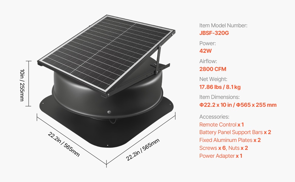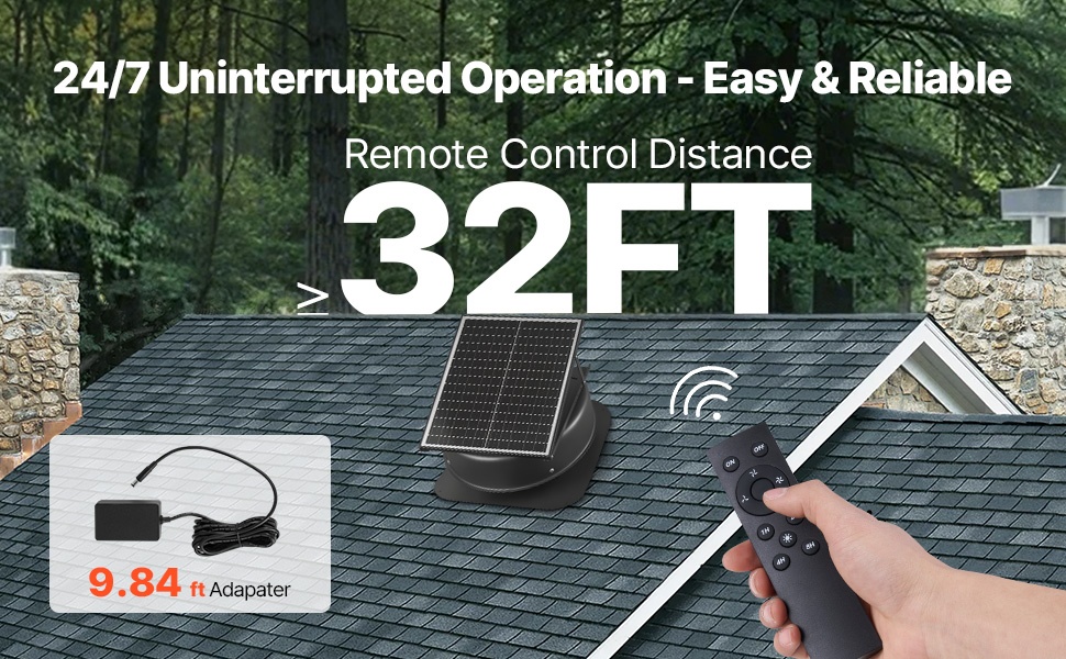 Laite on varustettu aurinkopaneelilla ja virtalähteellä, joten se voi toimia luotettavasti koko päivän ajan ja ylläpitää riittävää ullakon ilmanvaihtoa. Sisäänrakennettu harjaton DC-moottori on kestävä ja vaatii vain vähän huoltoa.