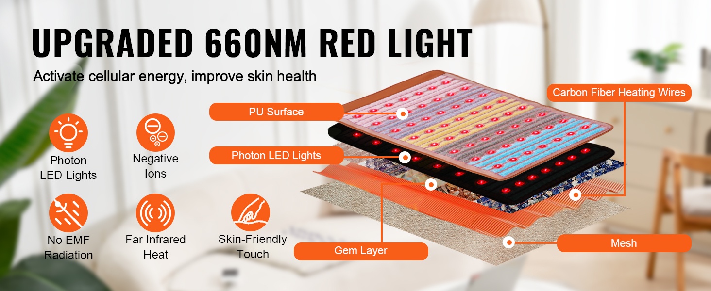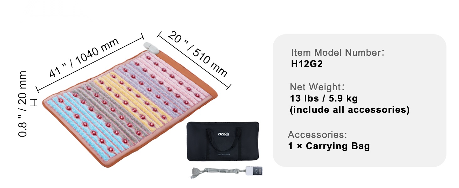 Tämä 40" x 20" kaukoinfrapun lämpötyyny yhdistää luonnolliset jalokivet, kaukoinfrapunasäteilyn ja 660nm punavalon, jotka yhdessä auttavat lievittämään lihasjännitystä ja -kipua selän, vyötärön ja hartioiden alueella. Lämmin, syvälle kudoksiin vaikuttava lämpö rentouttaa kehoa ja tukee verenkiertoa.