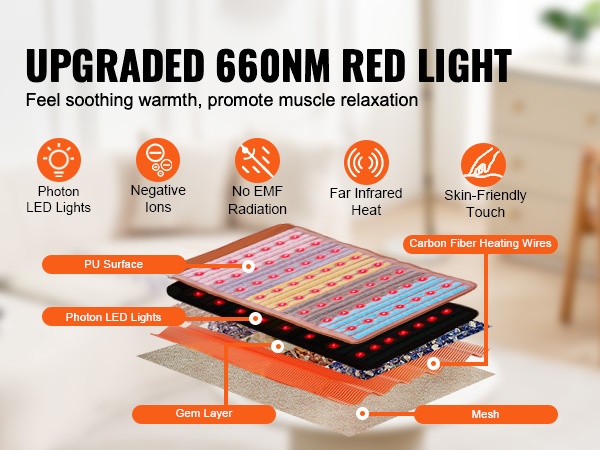 Lämpötyyny tarjoaa miellyttävän, tasaisen lämmön, joka auttaa lievittämään stressiä ja rentouttamaan kehoa. 40" x 20" kokoinen jalokivilämpömatto yhdistää 5 luonnollista jalokiveä, 660nm punavalon, kuumat jalokivet, kaukoinfrapunasäteet ja negatiiviset ionit. Lämpö ja valo vaikuttavat syvälle lihaksiin, auttavat lievittämään kipua ja tukevat verenkiertoa.
