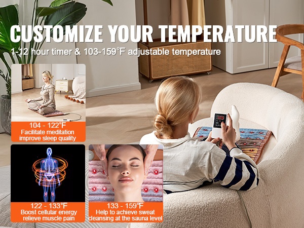 Älykkäällä ohjaimella voit säätää lämpötilan 103℉–159℉ -alueelle omien mieltymystesi mukaan. Ohjaimessa on muistitoiminto, joka muistaa edellisen asetuksesi, 0–12 tunnin ajastinasetus sekä automaattinen sammutus, joka auttaa ehkäisemään liiallista käyttöä ja varmistaa, ettei laite jää vahingossa päälle.
