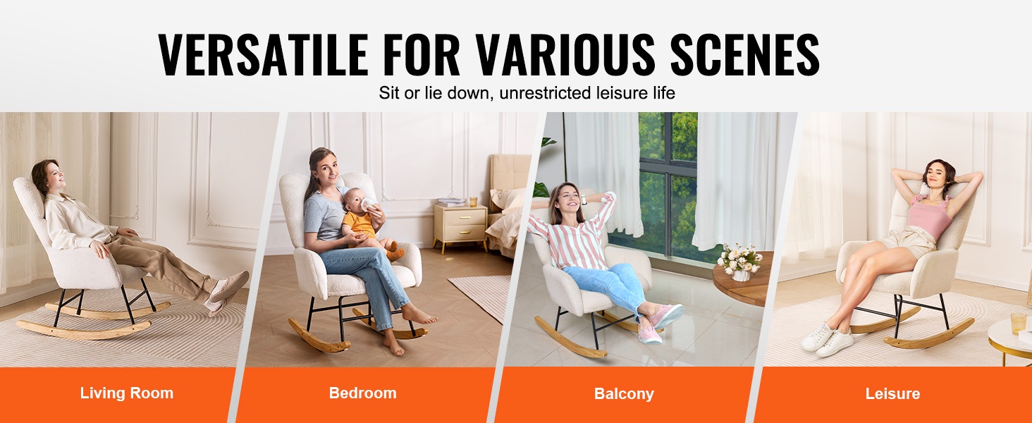 Yksinkertainen norsunluunvalkoinen väri sulautuu helposti erilaisiin sisustustyyleihin. Keinutuoli sopii niin rauhallisiin hetkiin vauvan kanssa kuin rentoon lukemiseen ja lepoon.