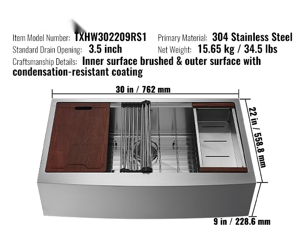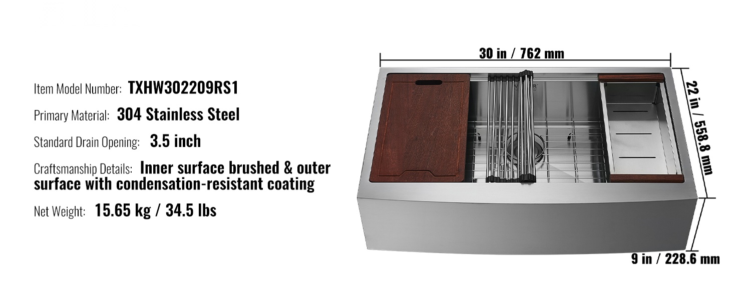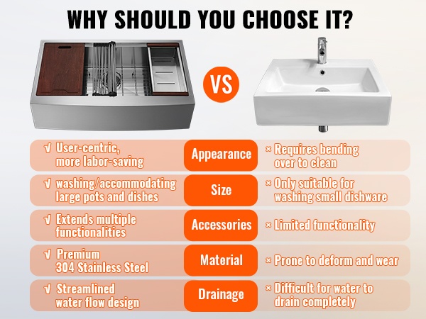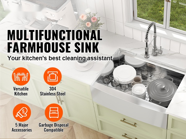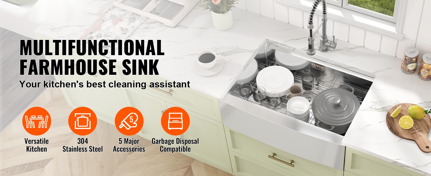 Tämä käytännöllinen ja tyylikäs monitoiminen maalaistyylinen keittiöallas lisää keittiösi esteettisyyttä ja tekee tiskaamisesta ja ruoanvalmistelusta sujuvampaa. Altaan reunoille sijoitettu taso mahdollistaa lisätarvikkeiden käytön suoraan altaan päällä, mikä säästää työtasotilaa.