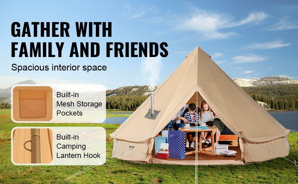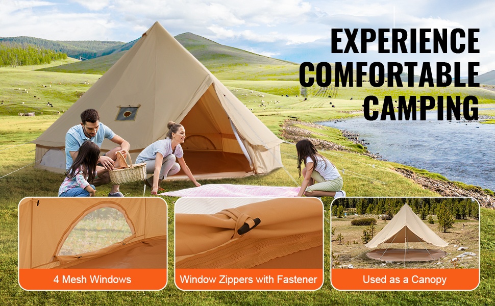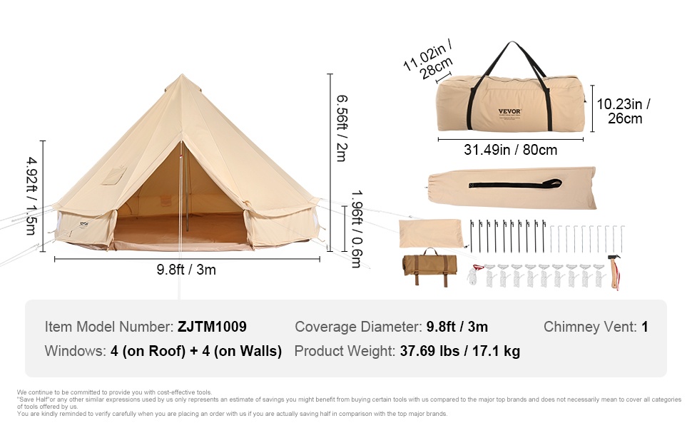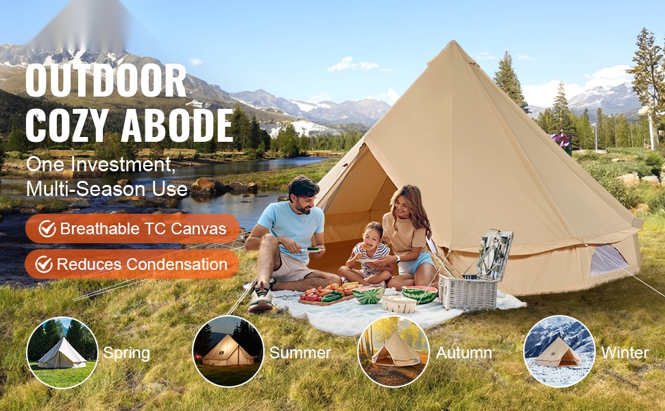 Tämä kelloteltta on valmistettu hengittävästä TC-puuvillakankaasta (65% polyesteriä ja 35% puuvillaa), joka sopii kevyeseen ja kohtalaiseen sateeseen. Voimakkaassa sateessa tai myrskyssä suositellaan erillistä lisäsuojusta. Vedenpitävät Oxford-kankaasta valmistetut seinät ja pohjakangas auttavat pitämään sisätilan miellyttävän kuivana.