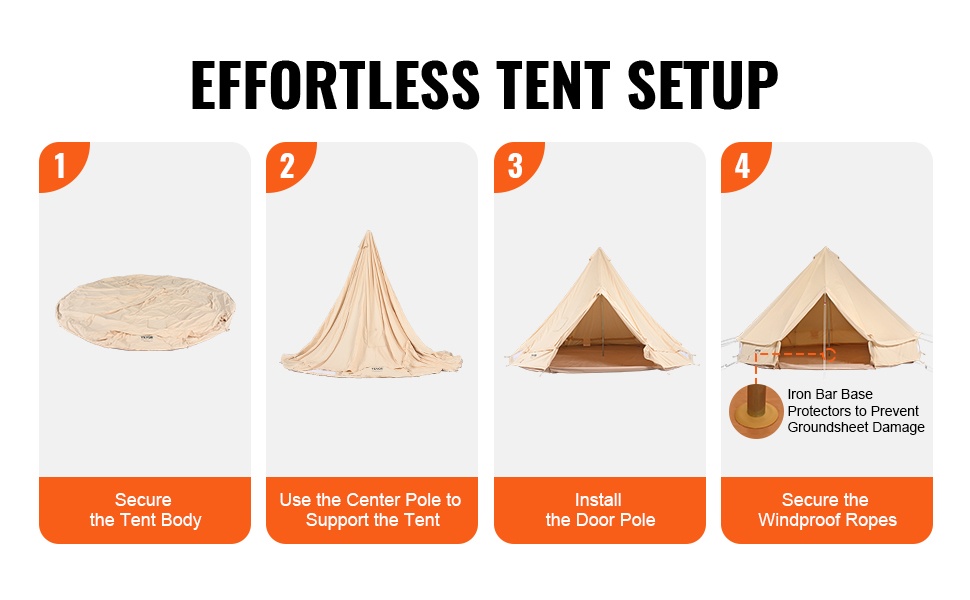 Teltan pystytys onnistuu neljällä perusvaiheella. Mukana tuleva leirityssarja, jossa on kiilat ja vasara, auttaa varmistamaan teltan tuennan ja vakauden. Näin leirin saa käyttövalmiiksi lyhyessä ajassa.