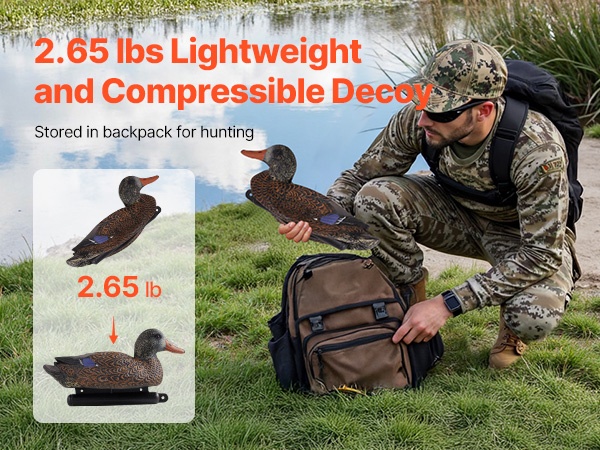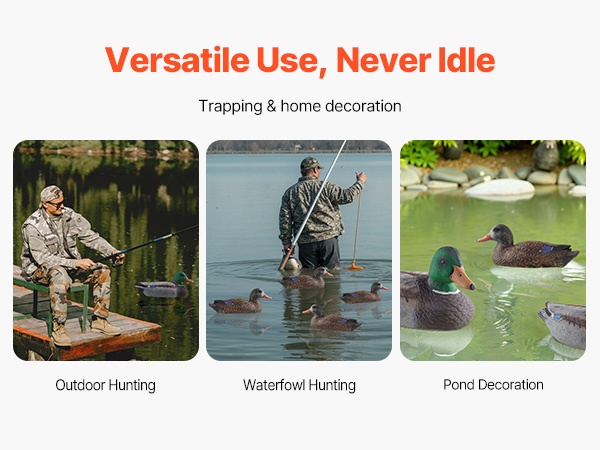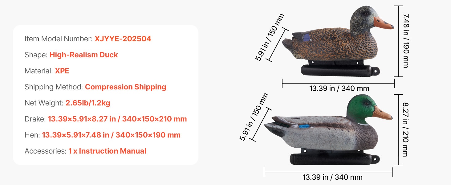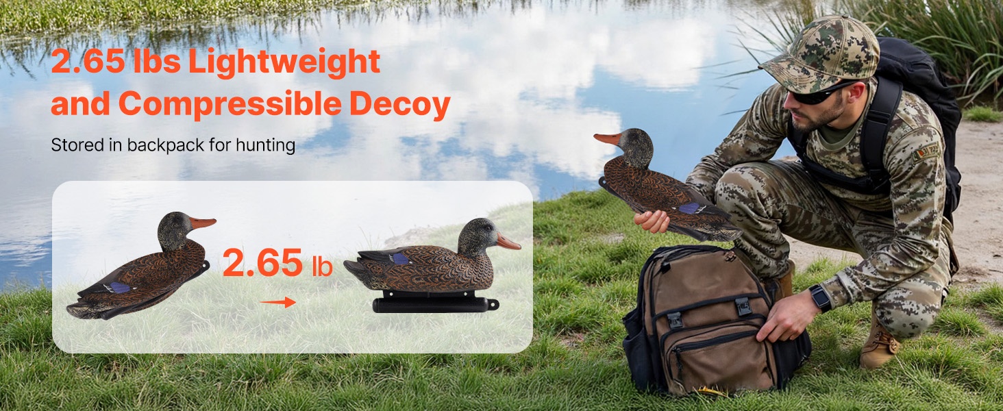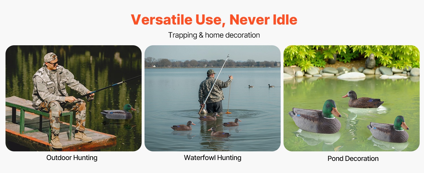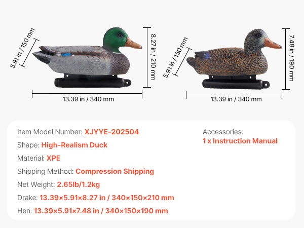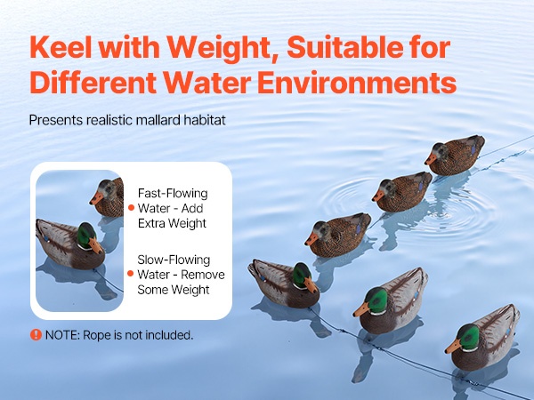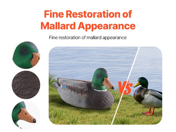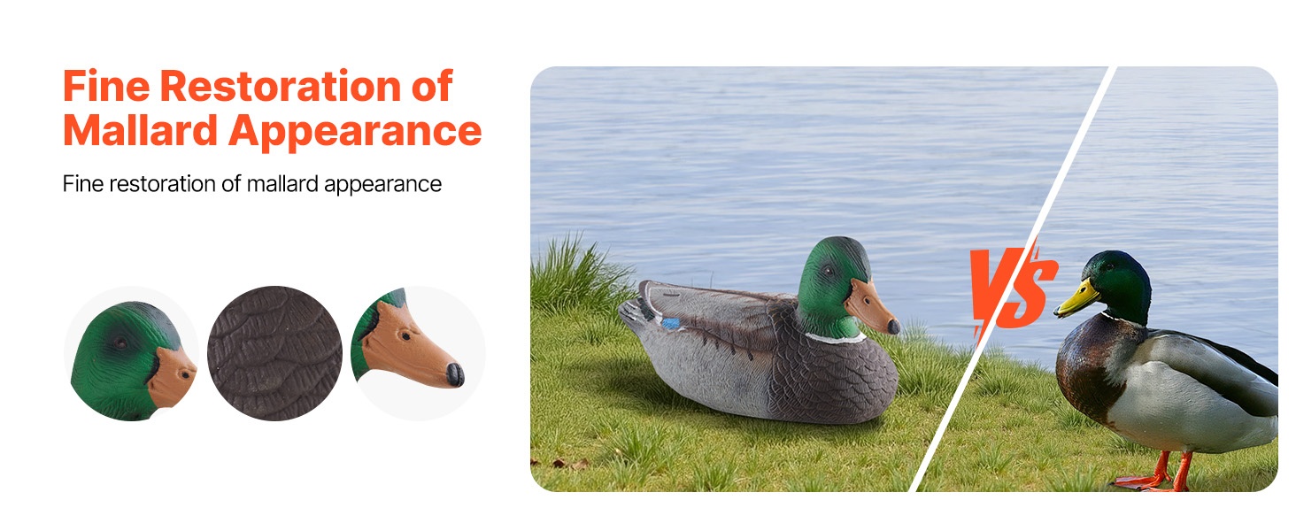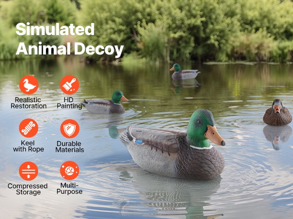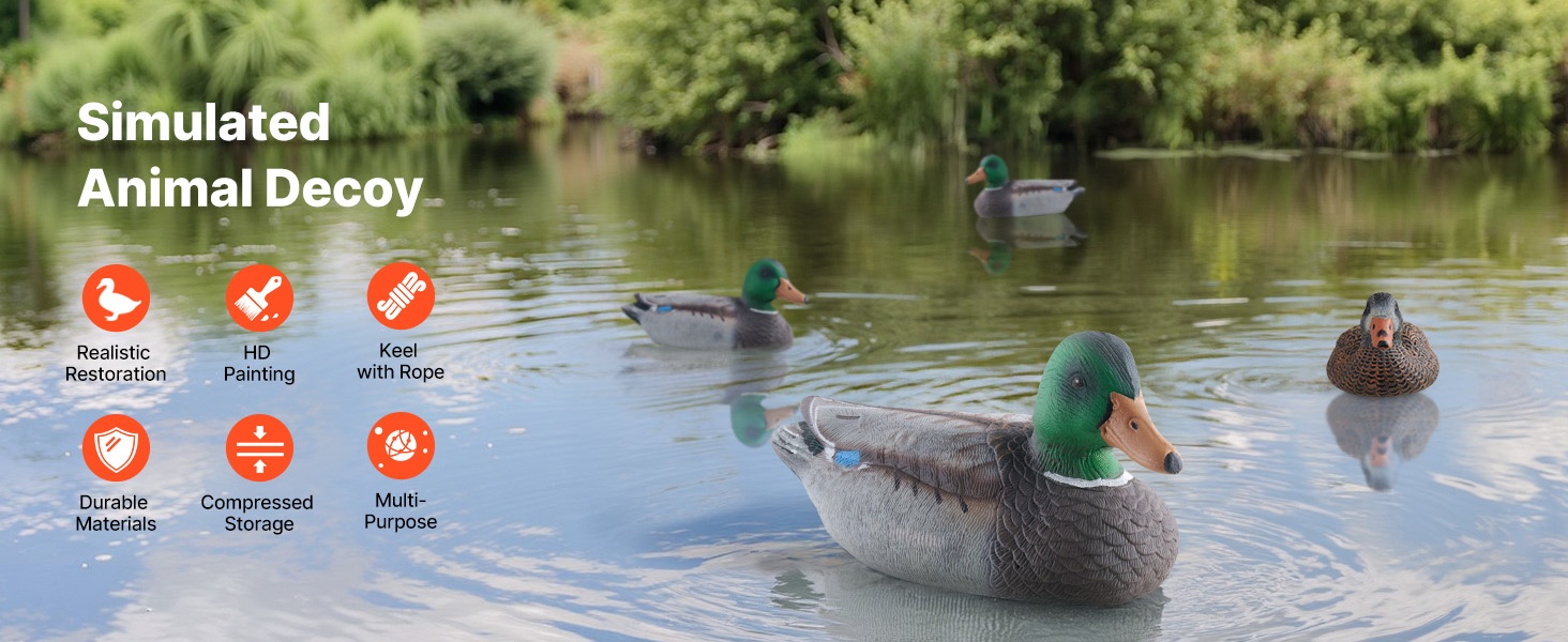 Nämä todentuntuiset kelluvat sorsavarikset jäljittelevät oikean sorsan ulkonäköä tarkasti. Jokaisessa variksessa on köydellä varustettu köli, joka helpottaa asettelua veteen. Rakenne on tukeva ja kestävä, ja puristettava materiaali tekee säilytyksestä ja kuljettamisesta vaivatonta.