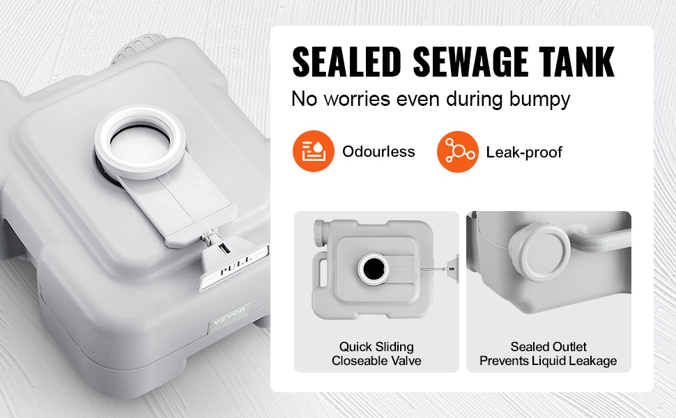 Liukuva tiivisteventtiili vähentää hajuja ja estää jäteveden vuotoa, mikä helpottaa puhtauden ylläpitämistä. Jätevesisäiliö on hyvä tyhjentää ajoissa, kun pinnan etäisyys venttiiliin on noin 0.8" / 2 cm, jotta ylivuodolta vältytään.