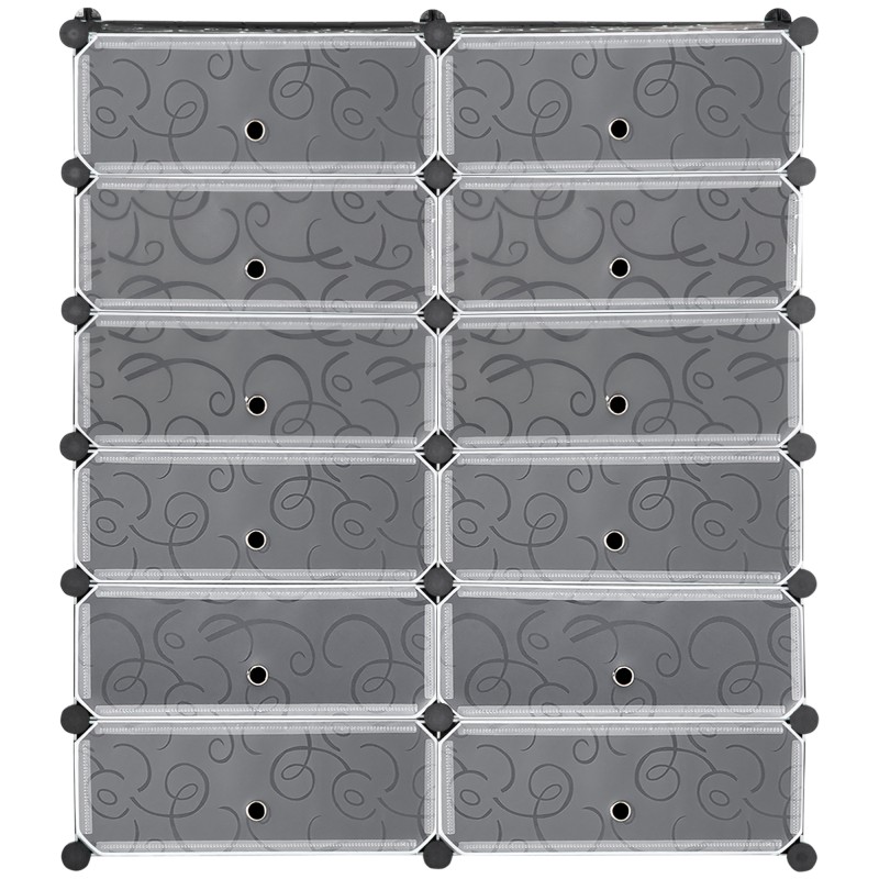 Tämä modulaarinen kenkähylly tarjoaa joustavan ja siistin ratkaisun arjen säilytykseen. Yhteensä 12 laatikkoa vetävät jopa 24 paria kenkiä, ja tarvittaessa niissä voi säilyttää myös leluja, pientä tavaraa ja kokoelmia. Kestävä muovirakenne ja tukeva metallirunko takaavat pitkän käyttöiän, ja selkeiden osien ansiosta hylly on helppo koota itse.