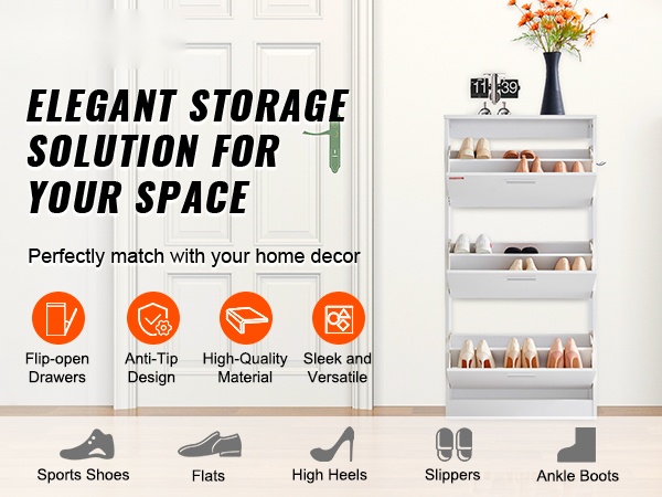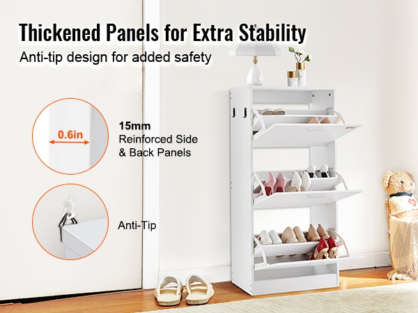 Kenkäkaappi on valmistettu P2-lastulevystä, ja sen sivu- ja takalevyt on vahvistettu 15 mm paksuuteen kestävyyden ja kulutuskestävyyden parantamiseksi. Alumiiniseoksesta valmistetut vetimet kestävät päivittäistä käyttöä ja tekevät laatikoiden avaamisesta ja sulkemisesta vaivatonta.