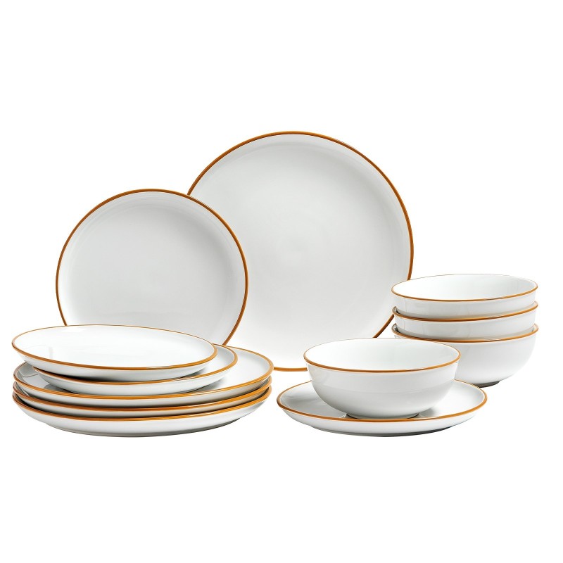 Keraaminen astiasto 4 hengelle HLSS-01, 12 osaa, norsunluunvärinen, astianpesukone- ja mikrokestävä