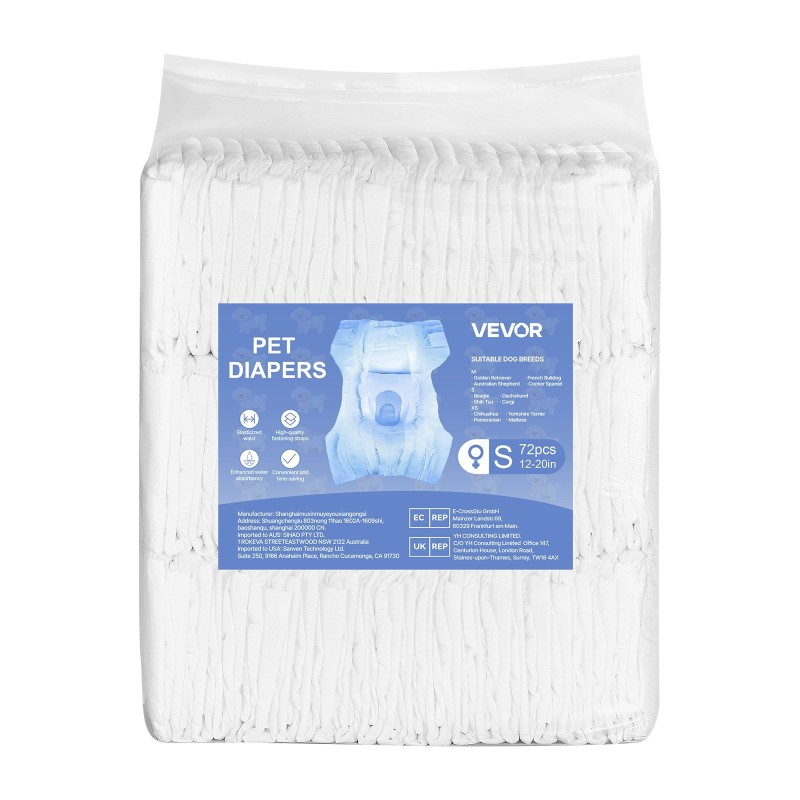 Nämä kertakäyttöiset narttukoiran vaipat ovat erittäin imukykyiset ja suojaavat 360° vuodoilta. Ne lukitsevat nesteen nopeasti, jotta koira pysyy kuivana ja mukavana. Joustava vyötärö, turkkiystävälliset tarrakiinnitykset, häntäreikä ja kosteusindikaattori helpottavat sekä koiran mukavuutta että arjen hoitoa.
