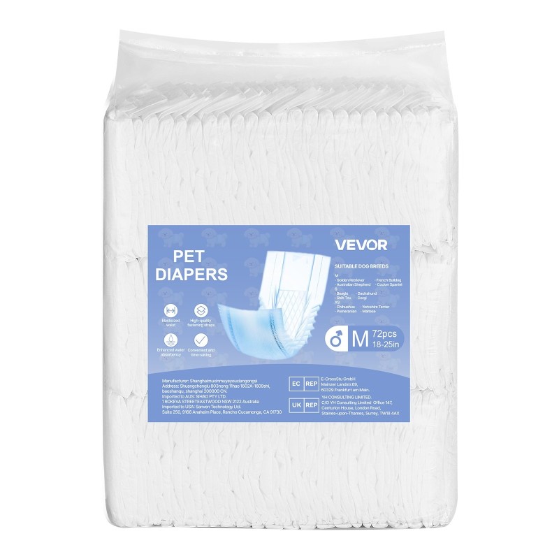 Nämä kertakäyttöiset uroskoiran vaipat tarjoavat erittäin hyvän imukyvyn ja 360° vuotosuojan, jolloin neste lukittuu nopeasti ja koira pysyy kuivana ja mukavana. Joustava vyötärö, turkkiystävälliset tarrakiinnikkeet ja kosteusindikaattori helpottavat sekä koiran mukavuutta että arjen hoitoa.