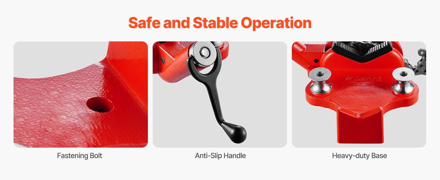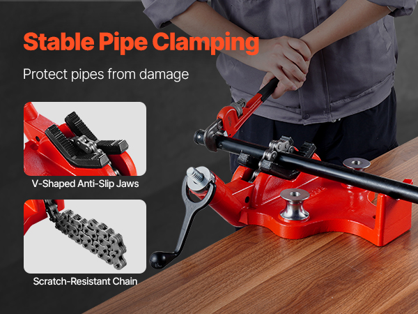 Ketjullisessa putkiruuvipenkissä on V-muotoiset liukuesteleuat ja raskas ketju, jotka pitävät putken tukevasti paikallaan. Puristus on vakaa ja turvallinen, ja putki pysyy paremmin suojattuna käsittelyn aikana.