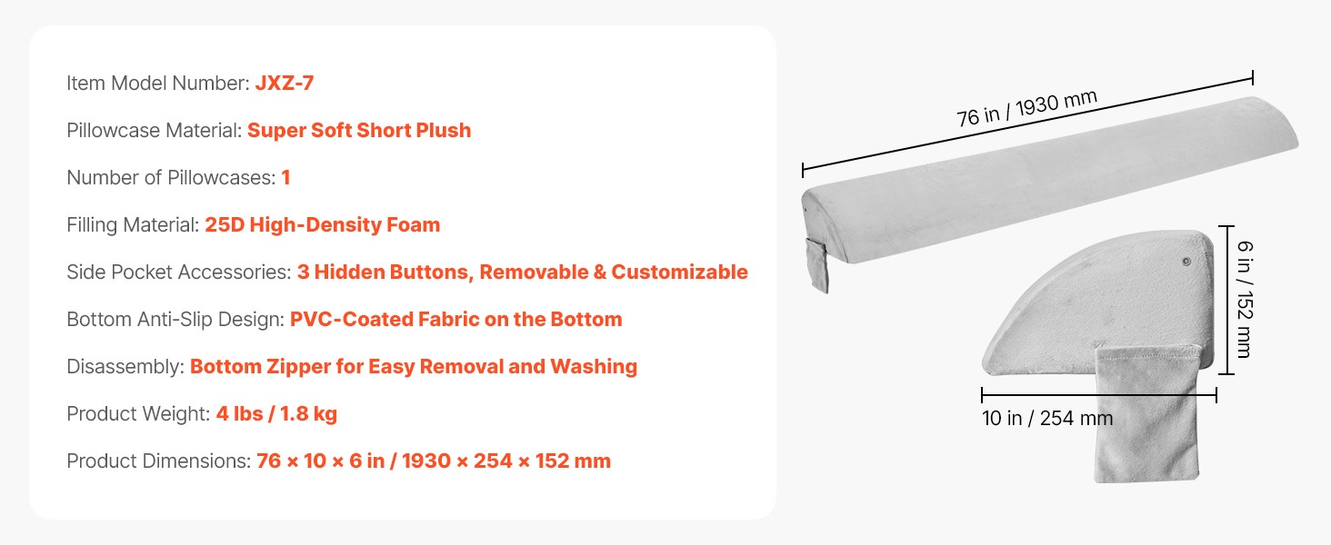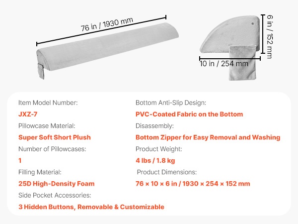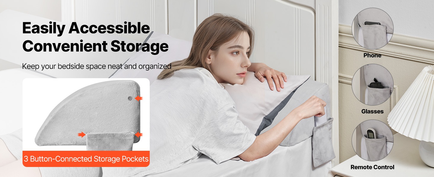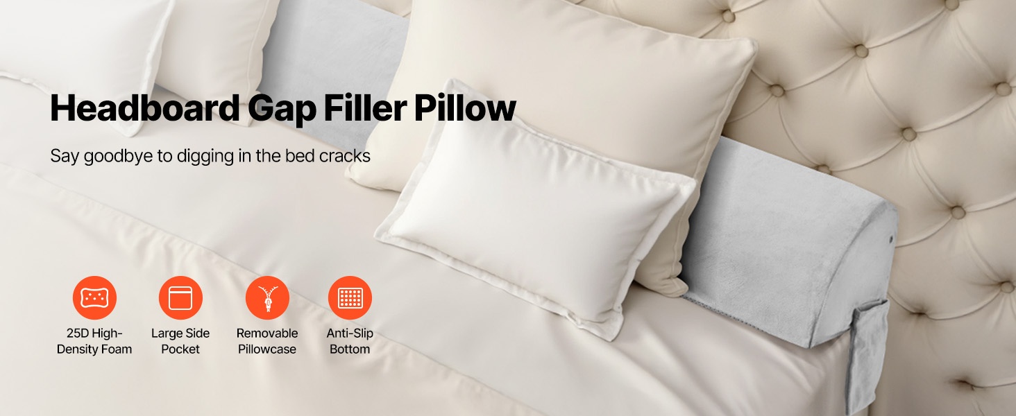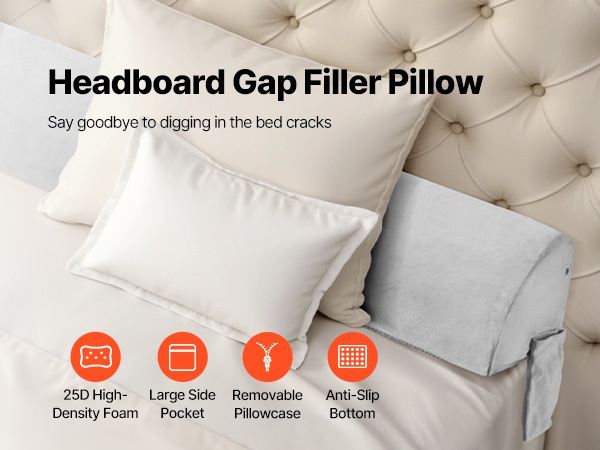 Bed wedge -tyyny täytetään 25D-korkeatiheyksisellä vaahdolla, joka tarjoaa pehmeän mutta tukevan tuen ja on hengittävä käytössä. Tyyny täyttää tehokkaasti sängynpäädyn ja patjan välisen raon, jolloin pienet tavarat eivät putoa väliin. Irrotettava päällinen helpottaa puhtaanapitoa, ja käännettävä muotoilu mahdollistaa tyynyn asentamisen eri asentoihin tarpeen mukaan.