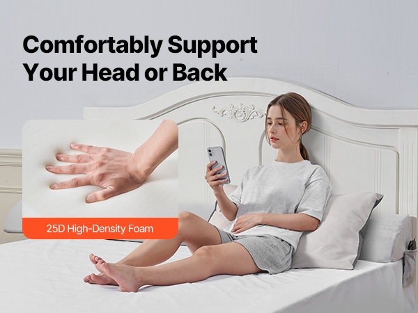 25D-korkeatiheyksinen vaahtomateriaali on pehmeä ja kimmoisa, ja se mukautuu kehon luonnollisiin muotoihin. Näin se tukee päätä ja selkää miellyttävästi niin lepohetkien kuin lukemisen tai työskentelyn aikana.