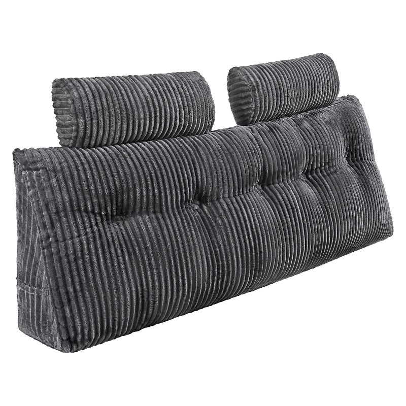 Tämä queen-kokoinen kiilatyyny tekee sängynpäädystä mukavan selkänojan lukemiseen, pelaamiseen, lepohetkiin ja etätyöhön sängyssä. Pehmeä, pestävä samettipäällinen tuntuu miellyttävältä ihoa vasten, ja tukeva täyte antaa hyvän tuen selälle ja niskalle.