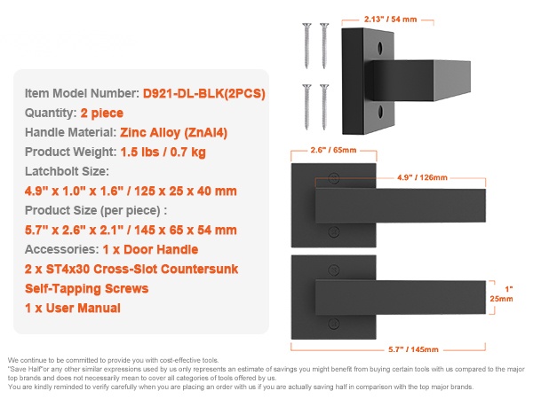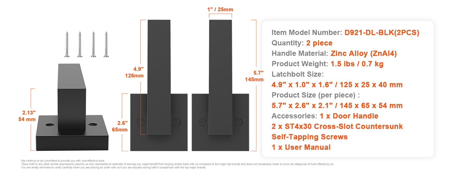 - Tuotemallinumero: D921-DL-BLK(2PCS)