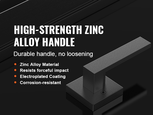 Kaksiosainen etuoven kahvasarja neliömäinen mattamusta messinki ja sinkki kääntyvällä kahvalla