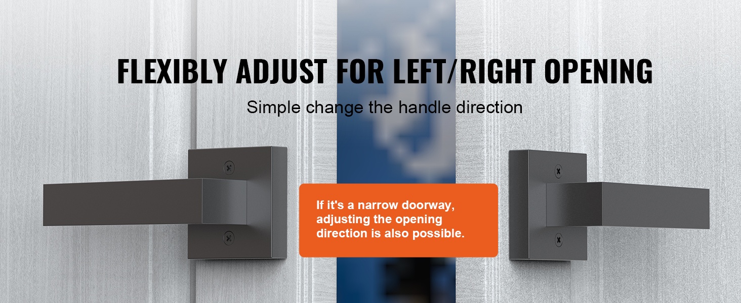 Ovenpainike sopii sekä vasen- että oikeakätisiin oviin, joten avautumissuunta ei rajoita käyttöä. Kahvaa voidaan säätää oven suuntaan, eikä vääränpuoleisen kahvan tilaamisesta tai asennussuunnasta tarvitse huolehtia.