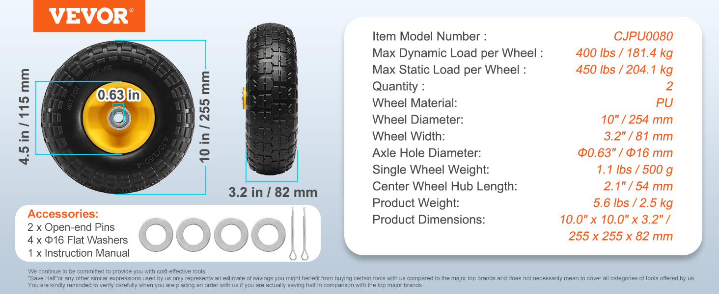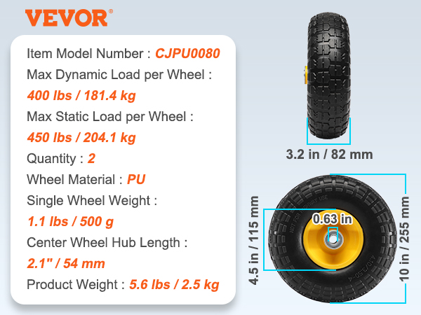 Yksi pyörä kestää dynaamisesti jopa 181.4 kg ja staattisesti 204.1 kg kuorman. Tämä tekee pyöristä sopivia käytettäväksi esimerkiksi työkärryissä, puutarhakoneissa ja muissa laitteissa, joissa vaaditaan luotettavaa kantokykyä.