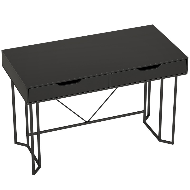 Kirjoituspöytä kahdella laatikolla, lastulevy ja teräs, 120 x 60 x 77 cm, musta