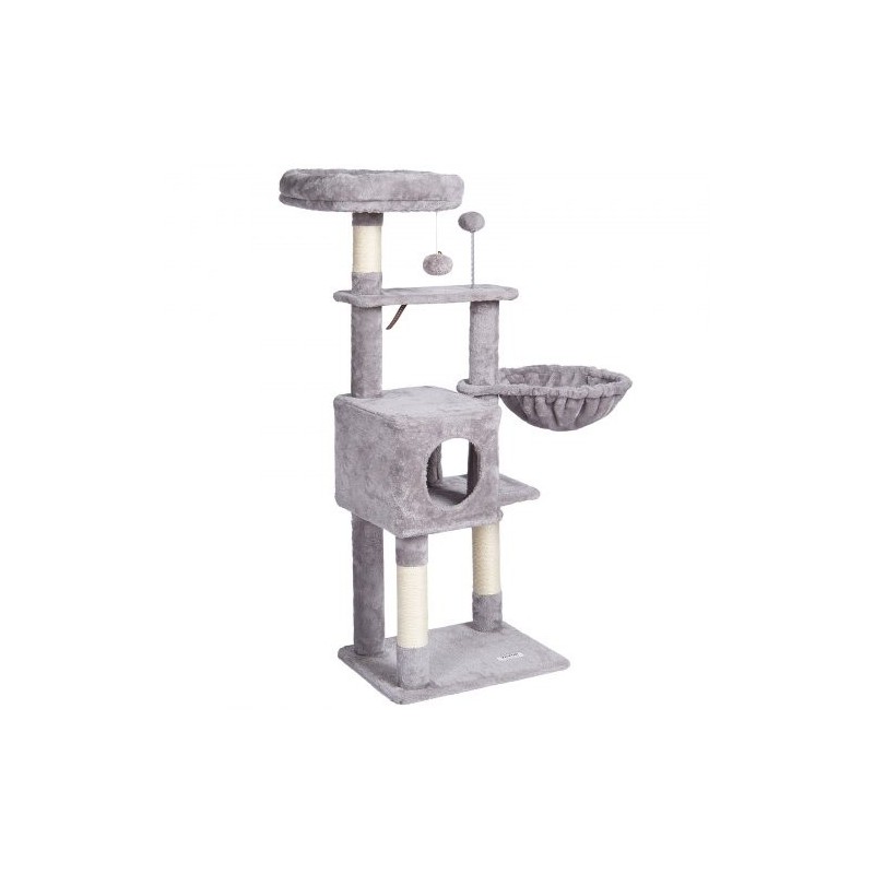Kissapuu lastulevy 143 cm 6 tasoa sisalilla päällystetyt pylväät riippumatto koppi vaaleanharmaa