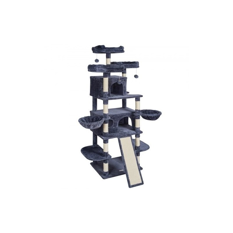 Monitasoinen 174 cm korkea kiipeilypuu tarjoaa 1–5 sisäkissalle runsaasti tilaa leikkiin ja lepoon. Useat tasot, pesät, riippumatot ja yläpedin tähystysalueet antavat jokaiselle kissalle oman paikan, säästäen samalla lattiatilaa kotona.