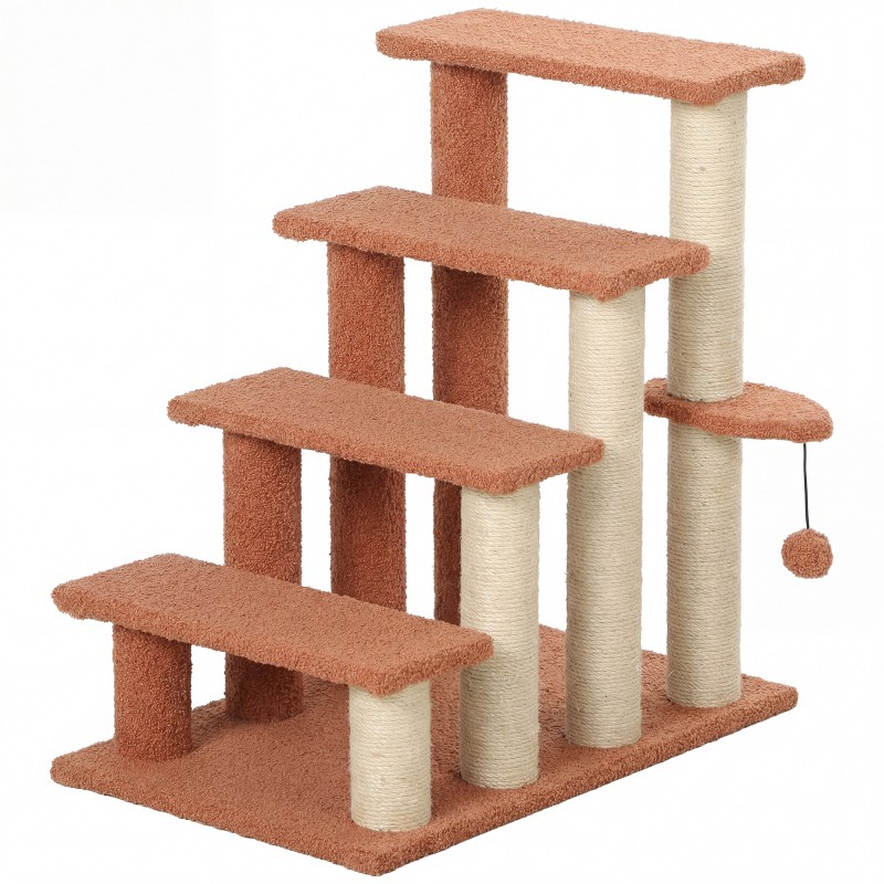 Tässä nelitasoisessa kissaportaisessa yhdistyvät kiipeily-, leikki- ja lepohetket. Kompakti rakenne, pehmeä plyysipinta ja juteella päällystetyt raapimapinnat tarjoavat kissalle mukavan tavan päästä sohvalle tai sängylle, teroittaa kynsiään ja vetäytyä pienelle torkuille. Sopii kissoille ja pienille lemmikeille, joiden paino on enintään 5 kg.