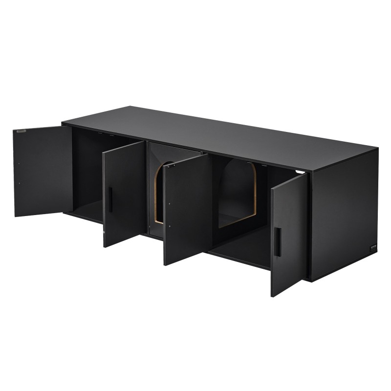 Kissanhiekkalaatikon kaappi lastulevy 147 cm musta kahdelle kissalle sisäkäyttöön