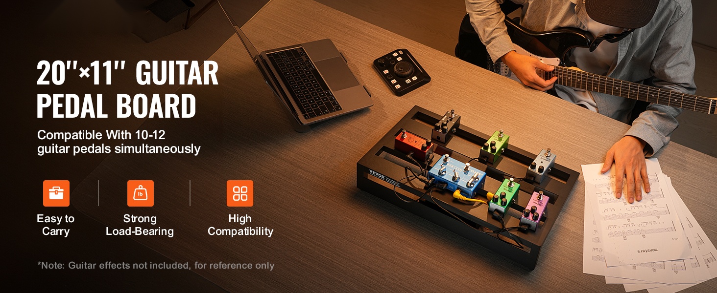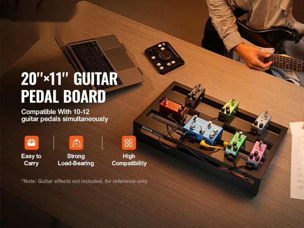 Monipuolinen 20'' x 11'' kitarapedaalilauta, johon mahtuu 10–12 pedaalia. Yläosaan saat efektit selkeästi järjestykseen ja alaosassa on tilaa virtalähteille. Kevyt, kestävä rakenne sopii sekä keikoille että treenikämpälle.
