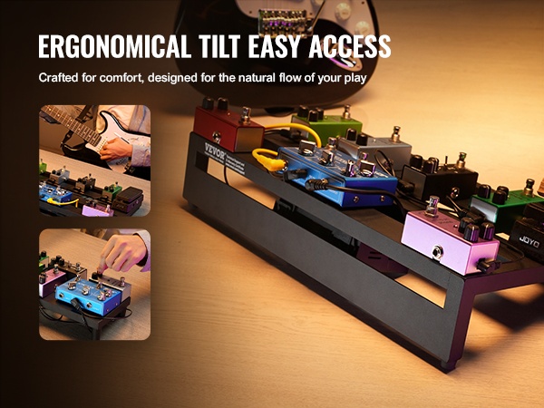 Kallistettu rakenne tekee pedaalien polkaisusta luonnollista ja vaivatonta. Pääset käsiksi kaikkiin pedaaleihin ilman turhaa kurottelua, ja kokonaisuus pysyy selkeänä myös useamman efektin kokoonpanoissa.