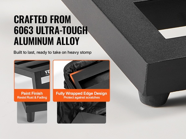 Lauta on valmistettu lujasta 6063-alumiiniseoksesta. Kulutusta kestävä maalipinta ja kauttaaltaan koteloitu reunarakenne suojaavat sekä laitetta että pedaalejasi naarmuilta ja pieniltä kolhuilta.