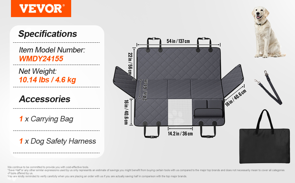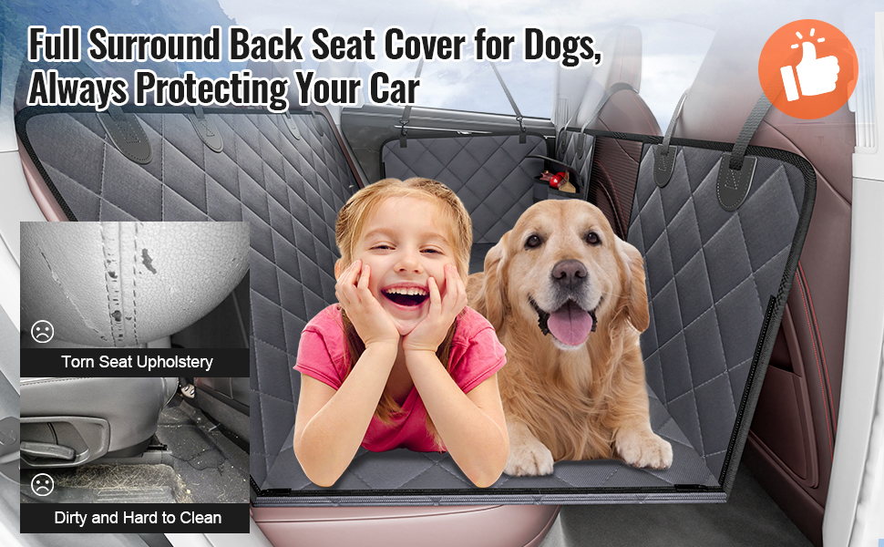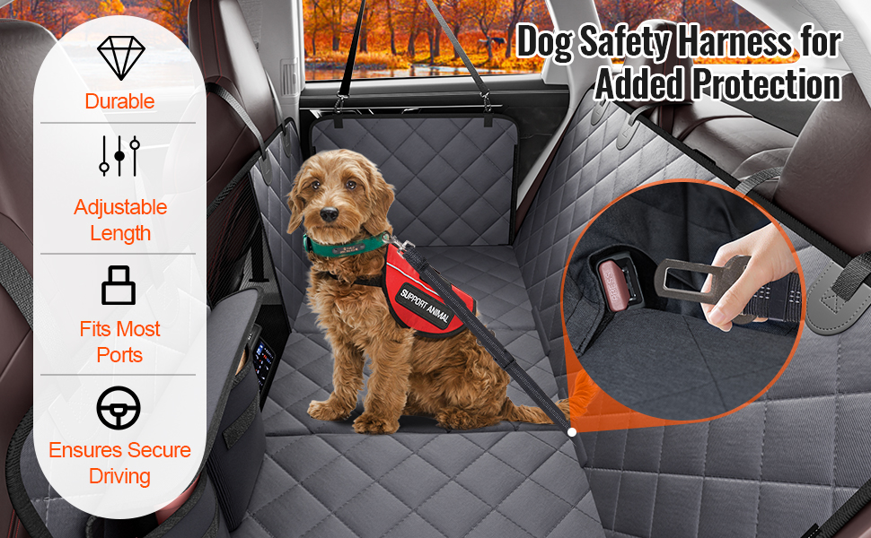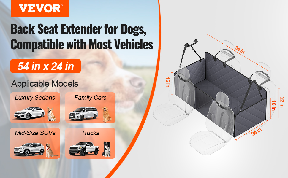 Tämä takaistuimen jatke ja koiran suoja peittää koko auton takaistuimen ja luo koiralle tasaisen, tukevan ja mukavan makuualustan. Kestävä, vedenpitävä ja liukumaton materiaali suojaa istuimia lialta, naarmuilta ja karvoilta sekä helpottaa siivousta. Hengittävä verkkopaneeli, säilytystaskut ja turvavyö parantavat matkustusmukavuutta ja -turvallisuutta.