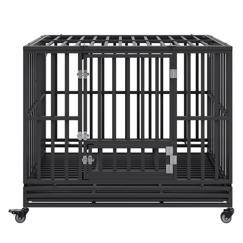 Tämä tukeva koiranhäkki tarjoaa tilavan ja turvallisen oman paikan keskikokoisille ja suurille koirille sekä sisä- että ulkokäyttöön. Koko 46.9"×31.9"×39" (noin 1190×810×990mm) antaa koiralle riittävästi tilaa liikkua, kääntyä, seistä ja käydä makuulle mukavasti. Yläovi mahdollistaa läheisen vuorovaikutuksen, etuovi helpon kulun sisään ja ulos, ja erillisen ruokinta-aukon kautta voit tarjota ruokaa ja vettä avaamatta koko ovea.