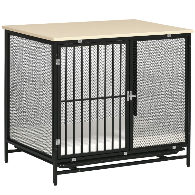 Koiranhäkki metallinen pentu/keskikokoinen koira, vettähylkivä alusta, irrotettava pohjakaukalo, 80 x 55 x 71 cm, musta