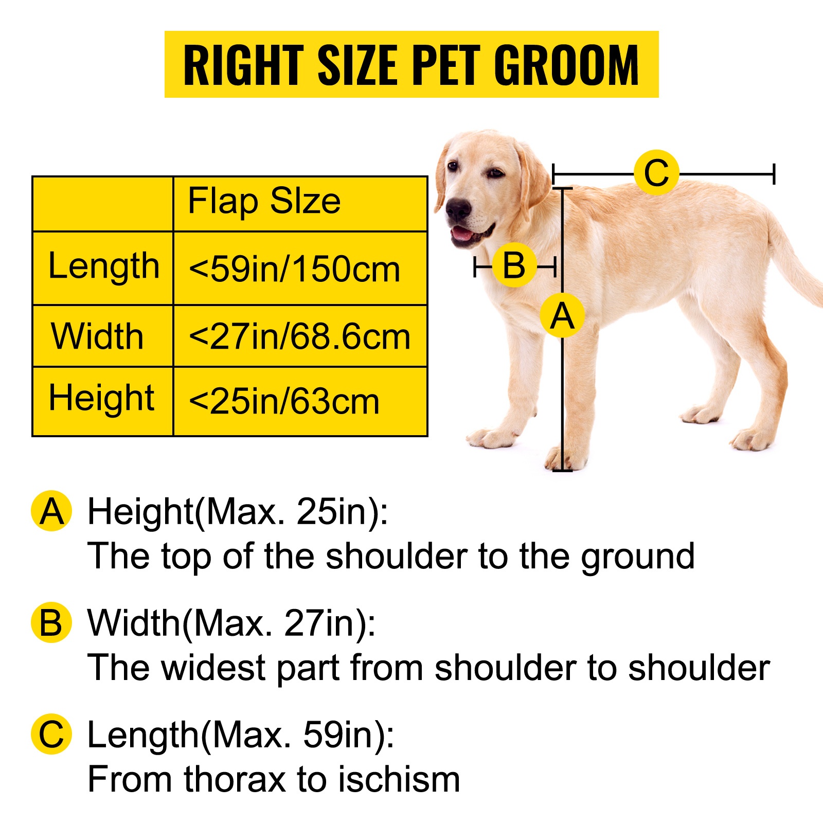 Vertaile lemmikkisi pituutta, leveyttä ja korkeutta altaan mittoihin ennen valintaa. Allas sopii lemmikeille, joiden enimmäispituus on 59" / 149.9 cm.