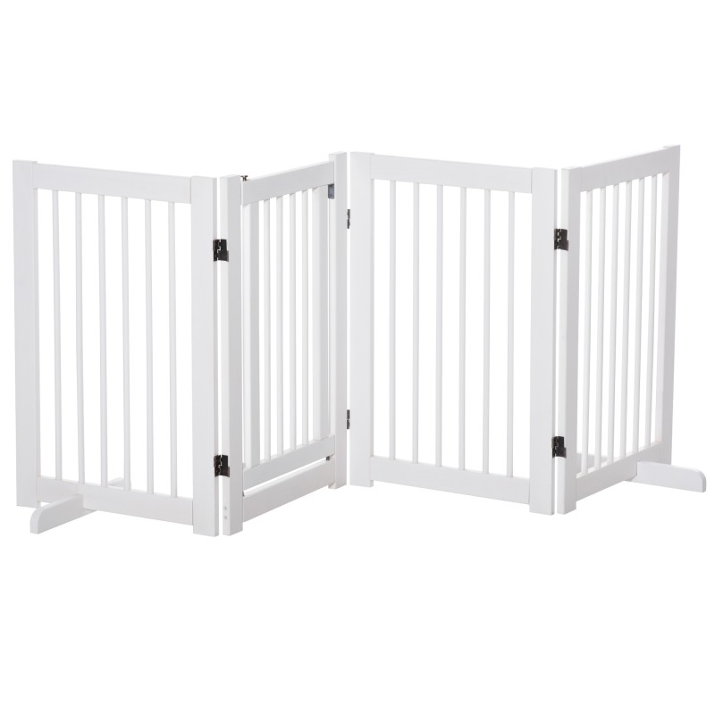 Koiraportti keskikokoisille koirille, mäntypuu, 4-osainen, 204 x 75 cm, taittuva, valkoinen