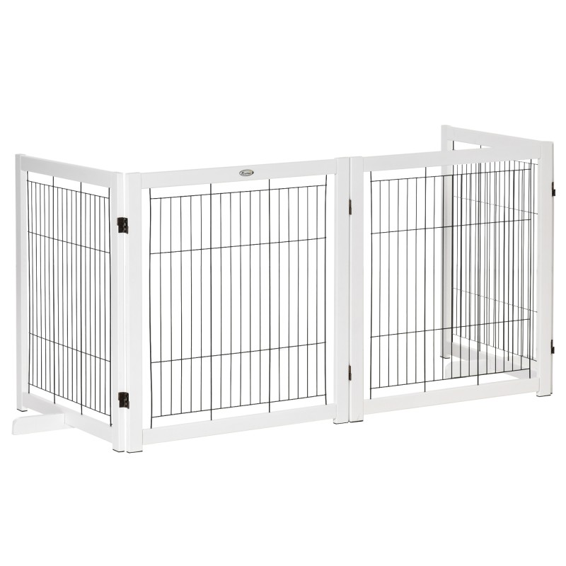 Koiraportti / koira-aitaelementti puu ja teräs 305 x 82 cm 4 paneelia valkoinen