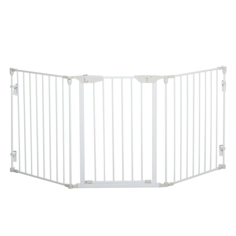 Koiraportti metallinen vapaasti seisova turvaportti 180 x 74,5 cm, 3 paneelia, valkoinen