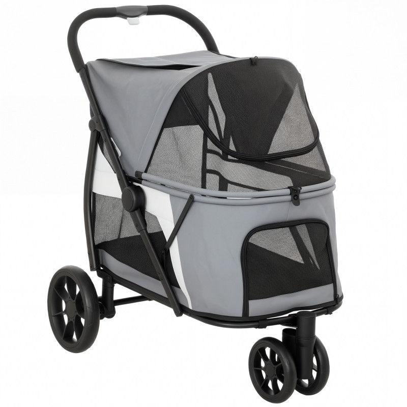 Koiravaunu koirille, taitettava 3-pyöräinen koirankärry max 20 kg, pestävä pehmuste, harmaa