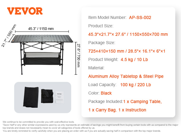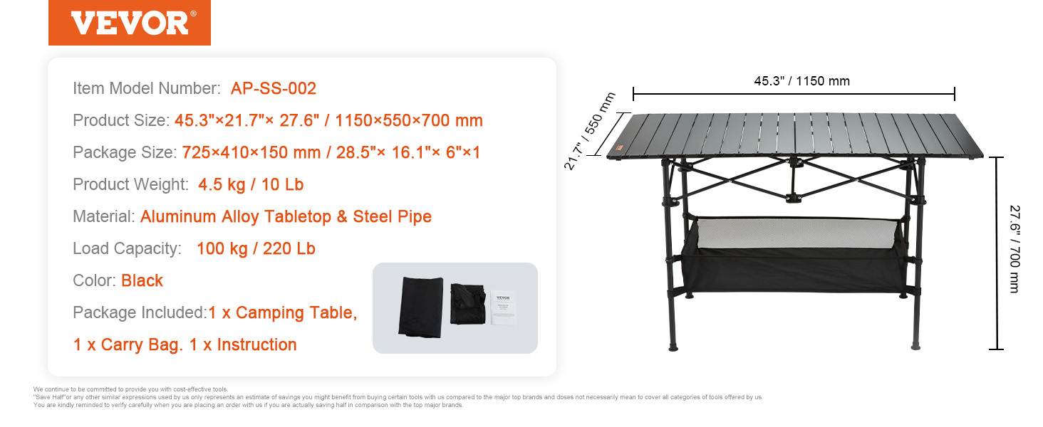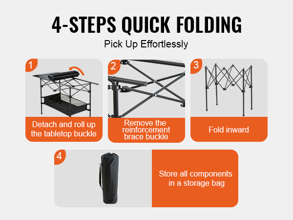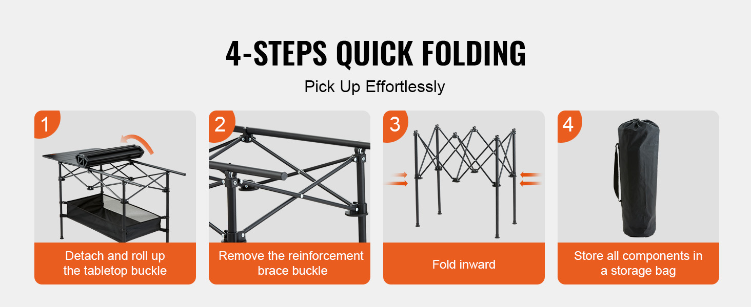 Tämä kokoontaitettava pöytä painaa vain , joten sitä on helppo kantaa yhdellä kädellä. Älykäs taittomekanismi tekee säilytyksestä vaivatonta, ja pöytä vie vain vähän tilaa autossa tai varastossa.