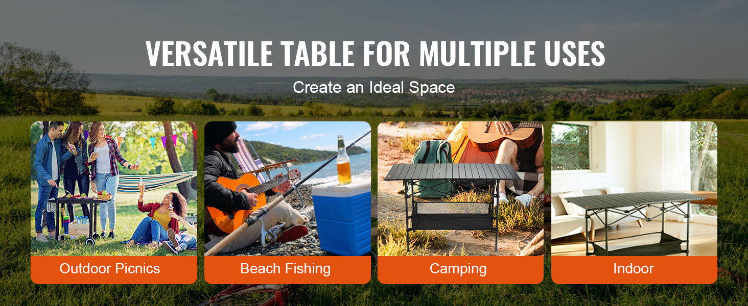 Pöytä on tarkoitettu rannalle, piknikille, leirintään ja muuhun matkailuun, ja sen koko mahdollistaa jopa kuusi henkilön istumisen.