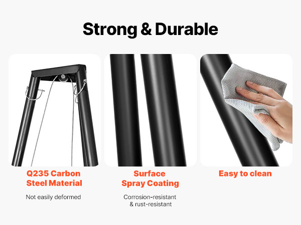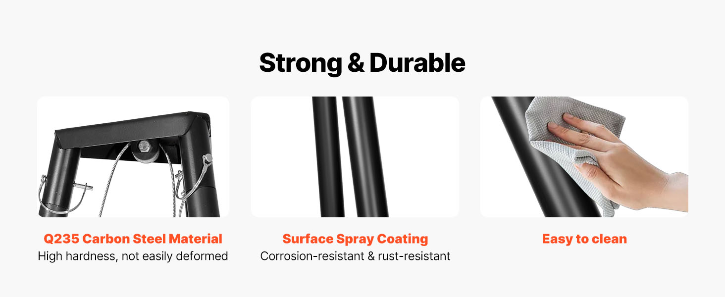 Nostin on valmistettu lujasta Q235-hiiliteräksestä, joka kestää kovaa käyttöä taipumatta tai vääntymättä raskaalla kuormalla. Ruiskumaalattu pinta suojaa korroosiolta ja ruostumiselta ja on helppo puhdistaa käytön jälkeen.