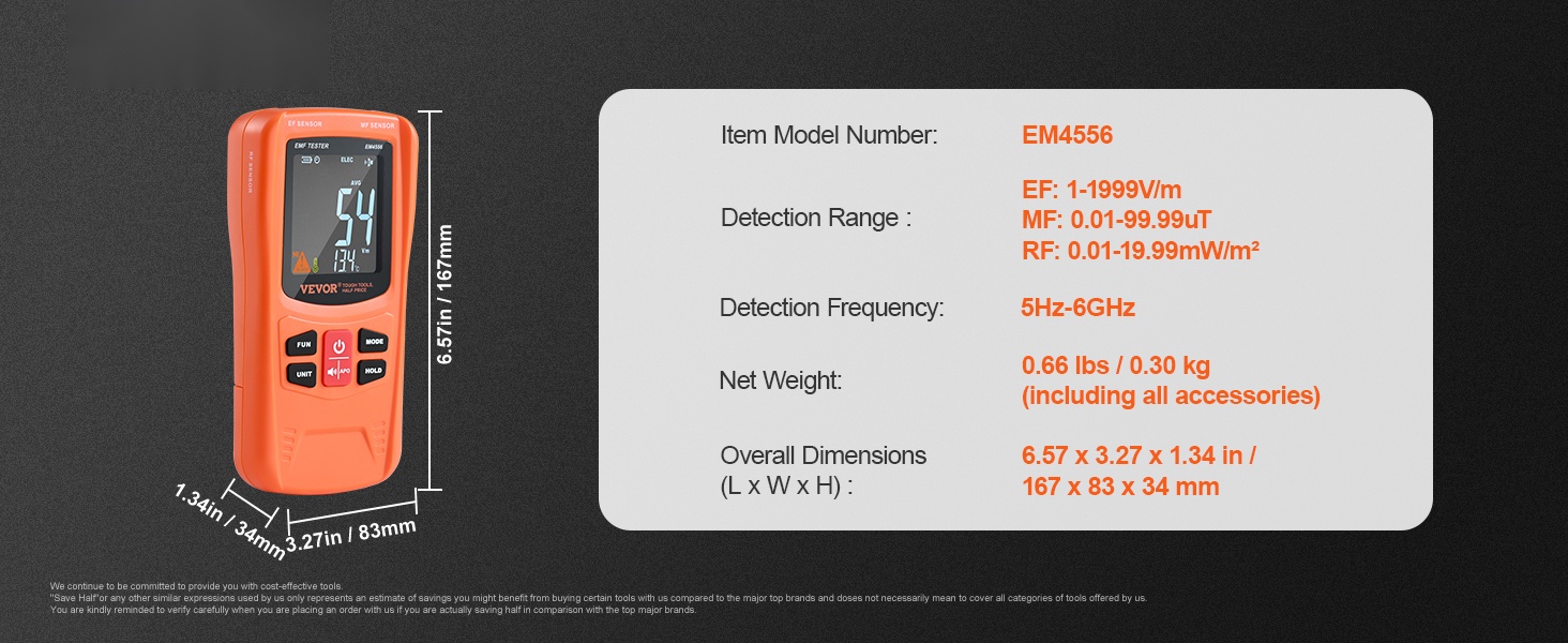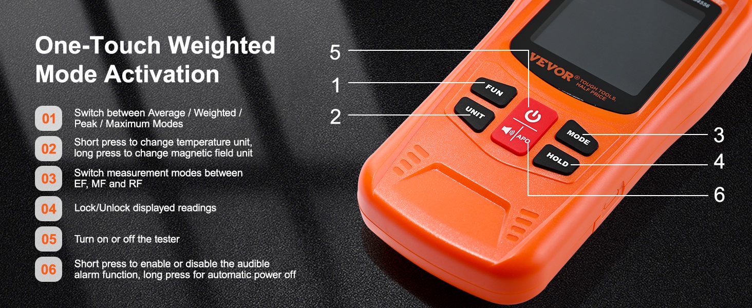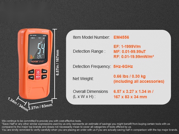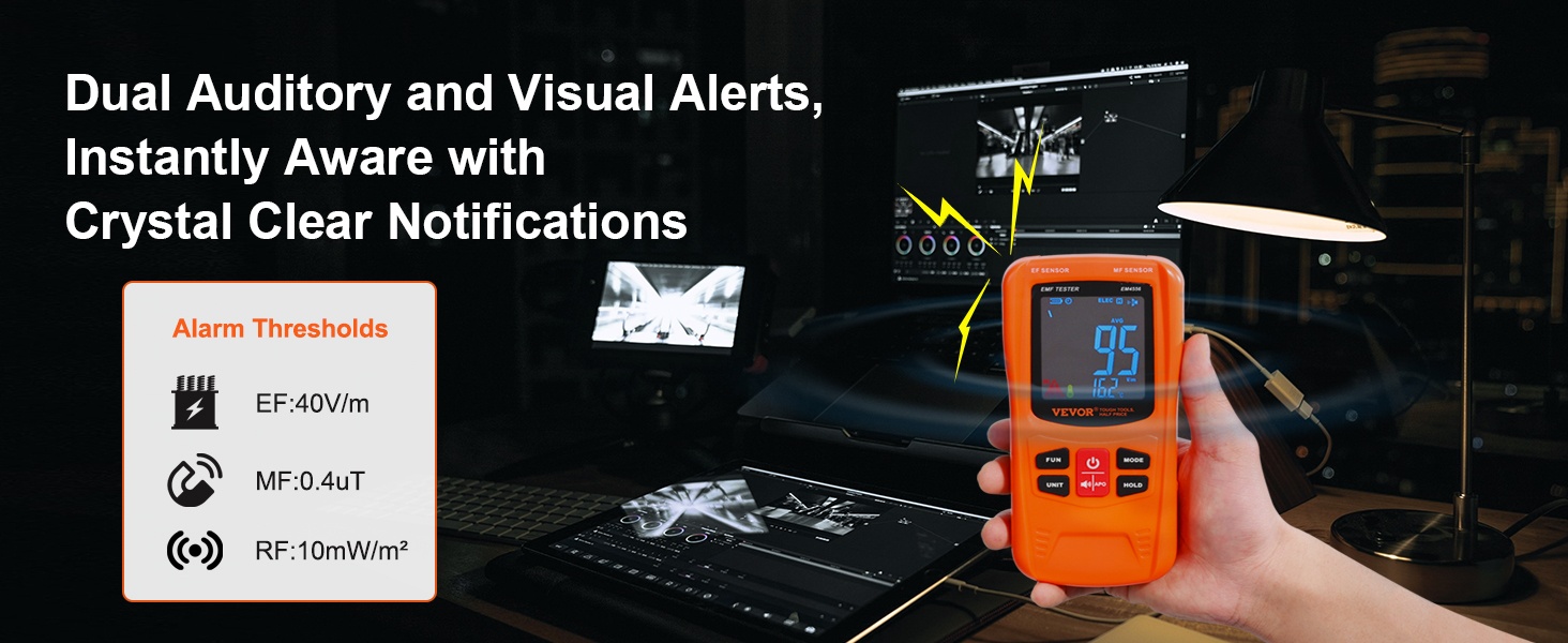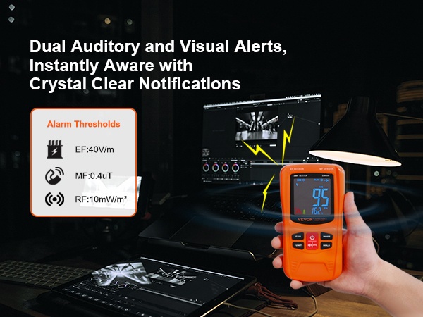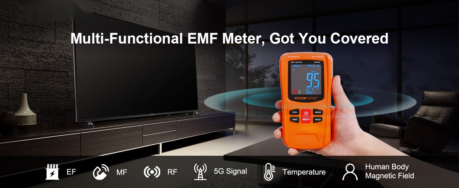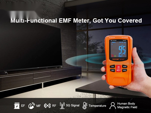 Tämä 3-in-1 EMF-mittari mittaa EF-, MF- ja RF-sähkömagneettisia kenttiä sekä arjessa esiintyvää signaalisäteilyä. Se tarjoaa laajan taajuusalueen ja selkeän digitaalisen LCD-näytön, joten säteilytasoja on helppo seurata kotona, työpaikalla tai ulkona.