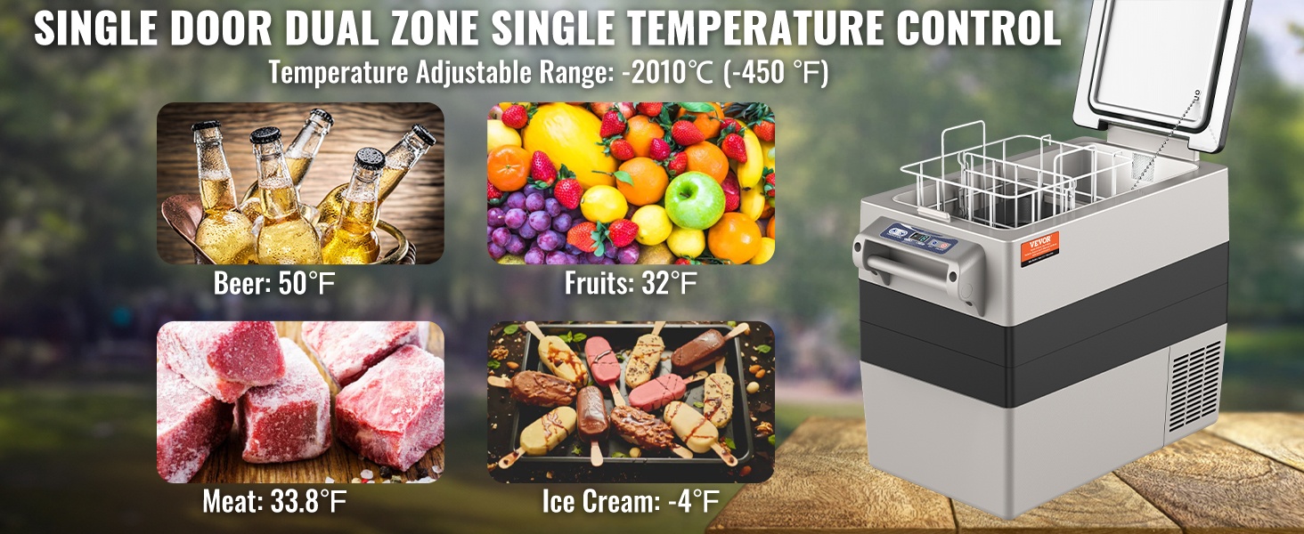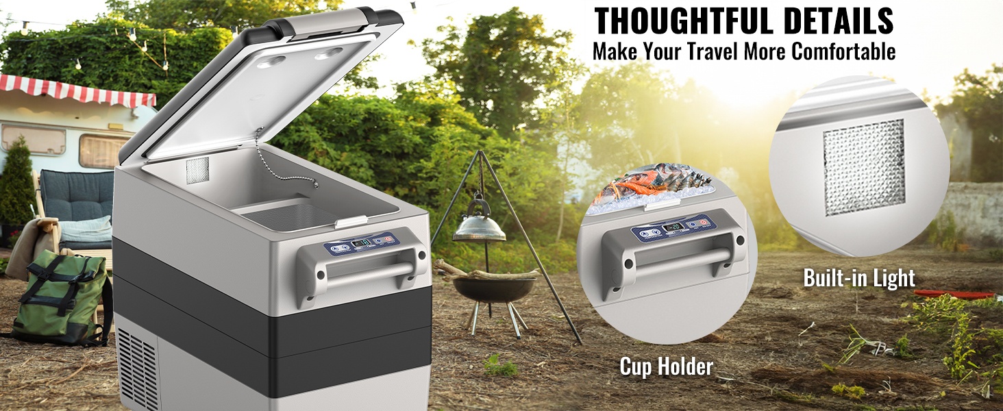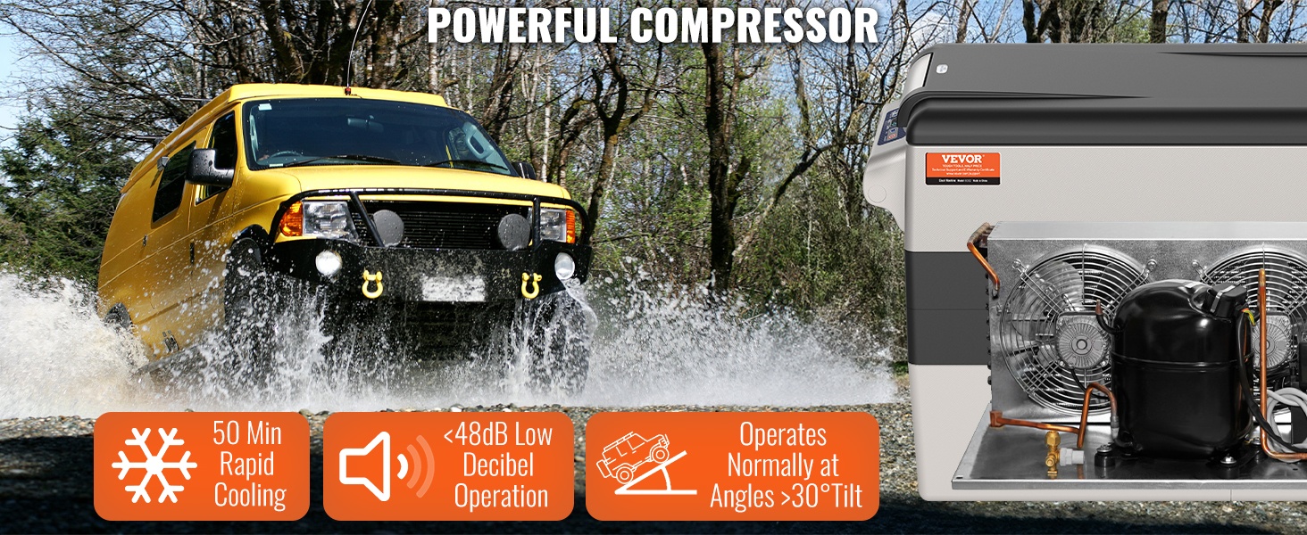 Kannettava kompressorijääkaappi tarjoaa 35L / 37QT tilavuuden juomille ja ruoalle autossa ja kotona. Päivitetty kompressori jäähdyttää nopeasti 1 tunnissa ja pitää lämpötilan välillä -4°F – 158°F. Kylmälaitteen kuori on PP+ABS-muovia ja sisäosa HIPS-muovia, mikä tekee rakenteesta kestävän.