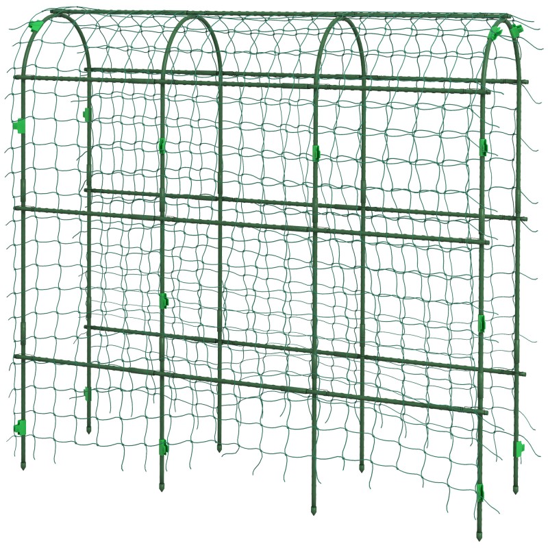 Muuta piha vihreäksi keitaaksi ja hyödynnä tila tehokkaasti korkean kasvitelineen avulla. Tukeva metallikaari ohjaa köynnökset kasvamaan ylöspäin ja vapauttaa tilaa maanpinnalta – ihanteellinen esimerkiksi tomaateille, herneille, kurkuille, viinirypäleille, marjakasveille ja koristeellisille köynnöskasveille. Mukana tuleva suojaverkko auttaa kasveja tarttumaan tukirakenteeseen ja voi samalla suojata satoa linnuilta.